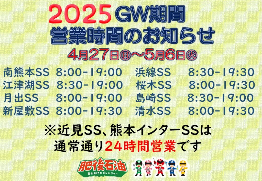 ※近見セルフSSと熊本インターセルフSSは通常通り営業しております
