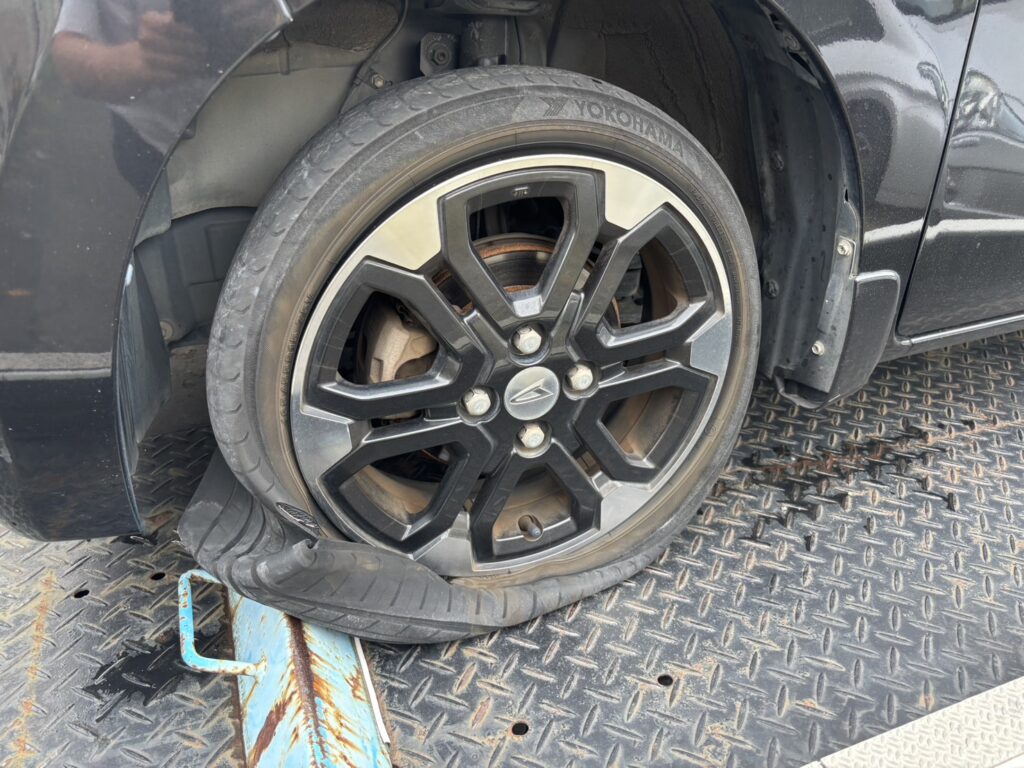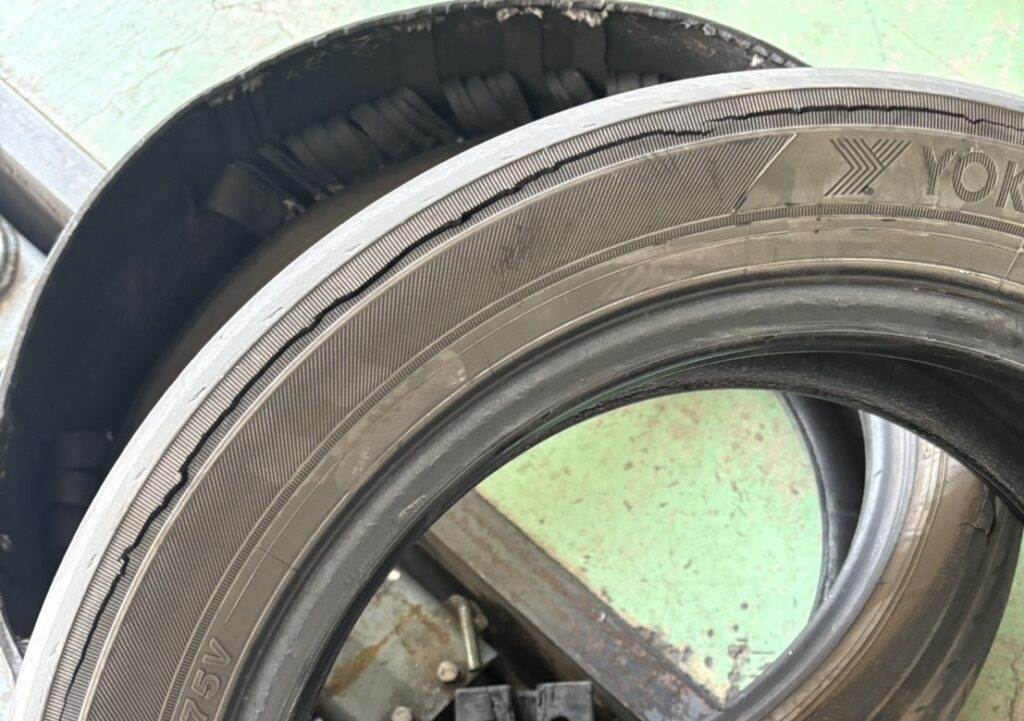 裏側なのでよく見えませんでしたが、こちらのタイヤもいつバーストしてもおかしくない状態でした。